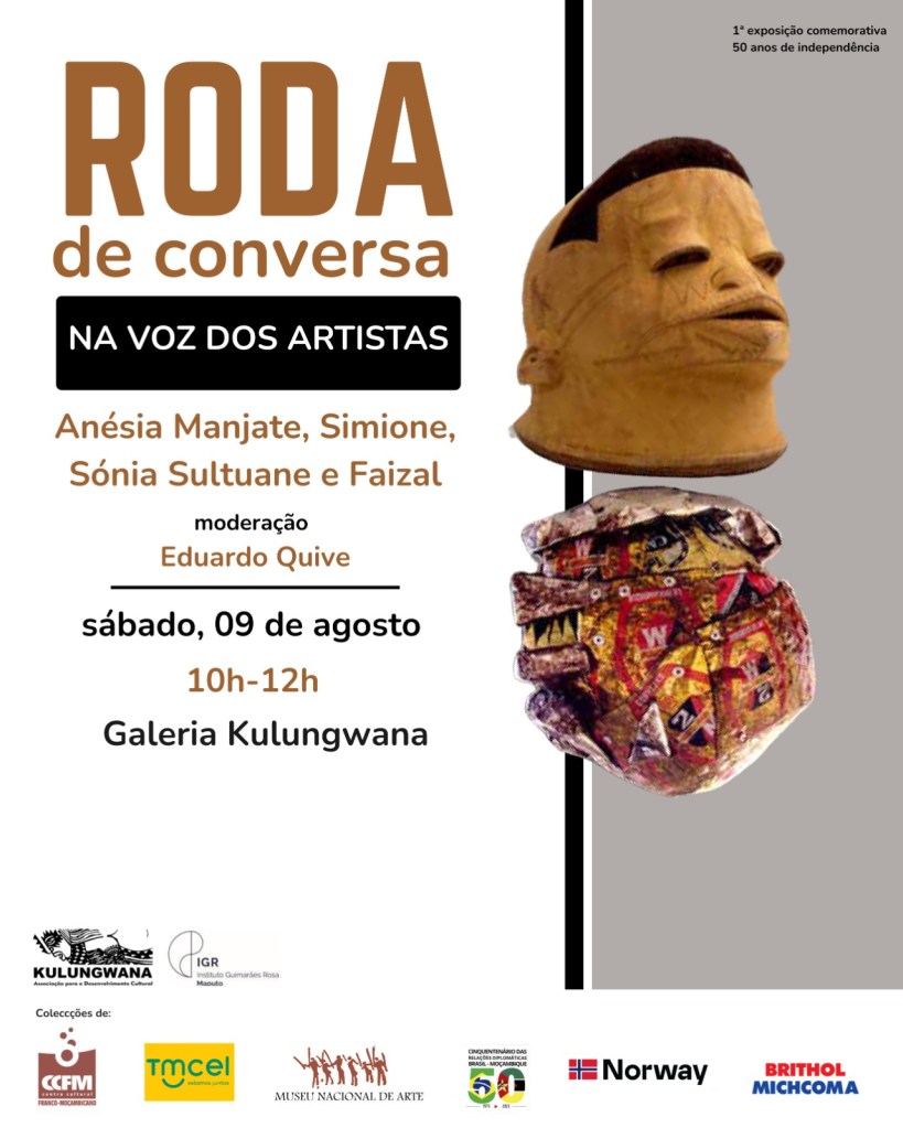 Formam a roda de conversa os artistas Anésia Manjate, Simione, Sónia Sultuane e Faizal, num encontro moderado pelo jornalista e escritor Eduardo Quive, onde partilharão ideias, processos e visões sobre a escultura e a criação artística em Moçambique.
