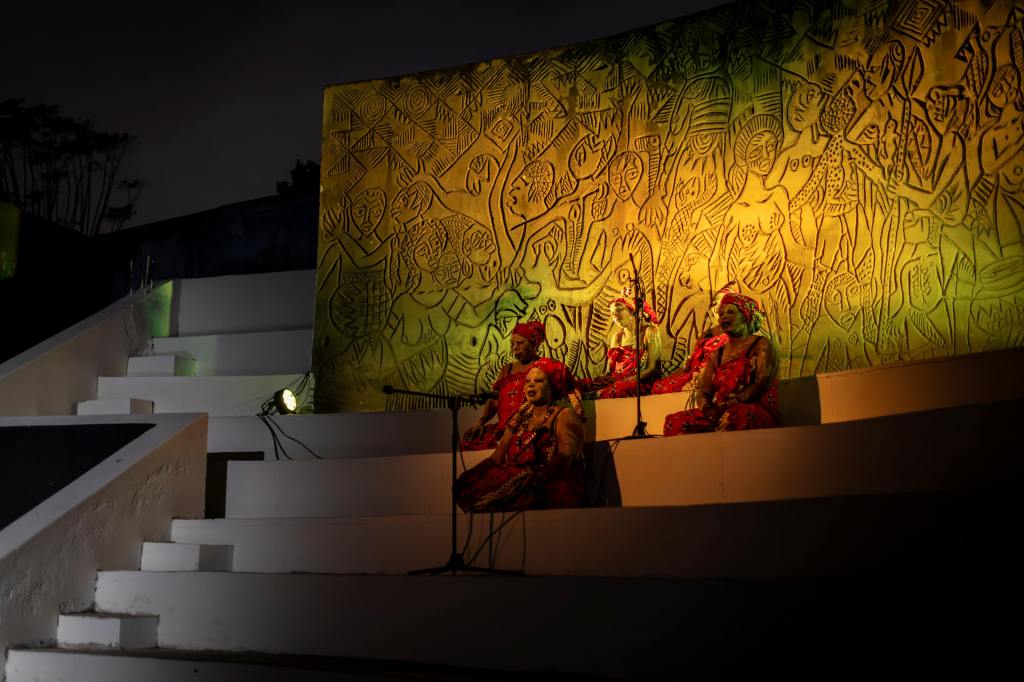 Os corpos eram as vozes perturbadas, desesperadas e castigadas pela vontade irreparável de regressar à terra e aos seus. Aqueles corpos não pertenciam àquelas mulheres em palco naquele instante. Como nos rituais de kufemba, eram pedaços de carne usada pelos espíritos ávidos de regressar dos cofins, para impor a sua presença e vontade. Ou será o delírio, a orfandade e a saudade que levou ao limite da sanidade, até que nada mais importasse, senão tirar de uma vez o que a alma já não suporta.